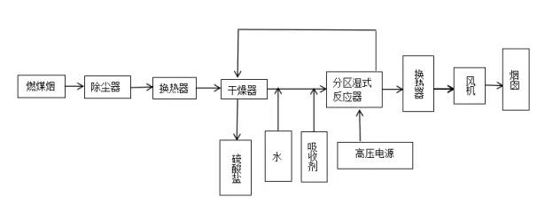 等離子體分解法是在外加電場的作用下,介質放電產生的大量攜能電子轟擊污染物分子,引發了一系列復雜的物理、化學反應,從而使污染物得以降解去除的一種廢氣治理方法。工藝流程圖如下: