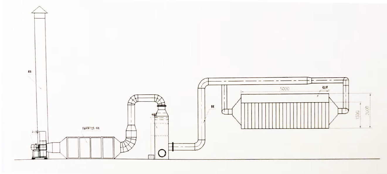 3) 廢氣中的惡臭氣體和帶有刺激性氣味的氣體,進入UV光催化氧化設備,后被凈化成二氧化碳和水。