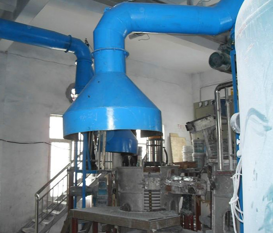 6、吸塵罩需要有一定的空間,以緩沖氣流減小正壓,與接管連接時收縮角不宜大于60°。與罩相接的一段管道最好垂直設置,以免進入物料造成管道堵塞。