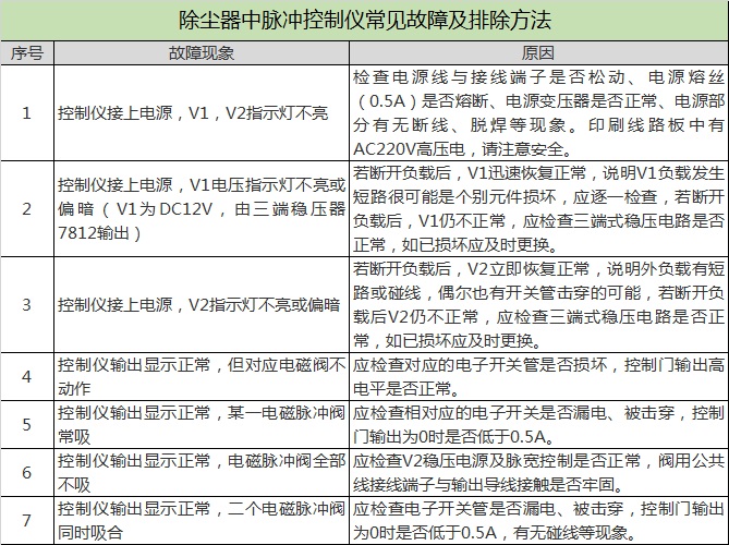 ⑧ 脈沖控制儀在使用中容易出現的故障及排除方法: